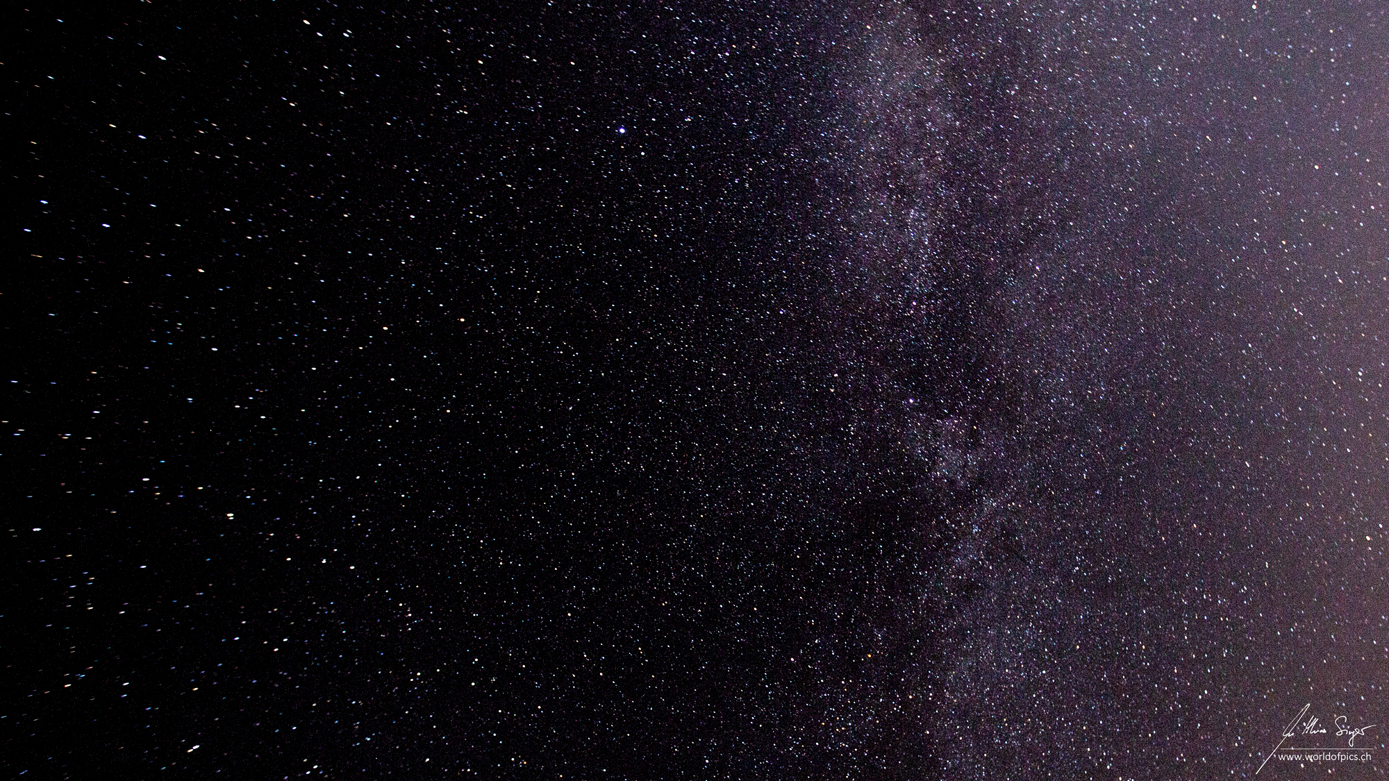 Das Bild ist in der Nacht vom 27. Juli 2018 entstanden, während der totalen Mondfinsternis. Die Milchstrasse und auf der rechten Bildhälfte schon ganz viel Licht vom Mond, der allmählich aus dem Kernschatten der Erde hervortritt.