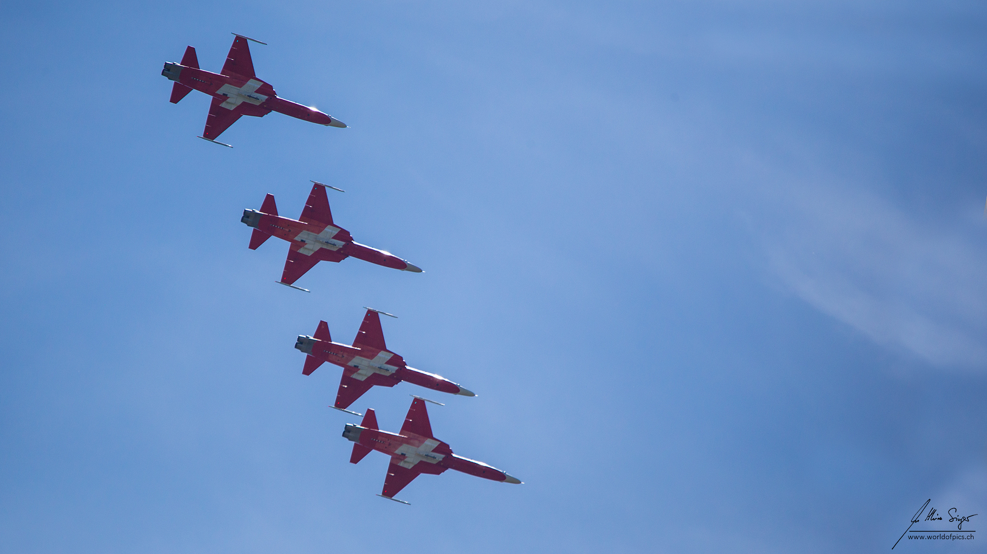 Die Kunstflugstaffel der Swiss Airforce bei einer Übung.