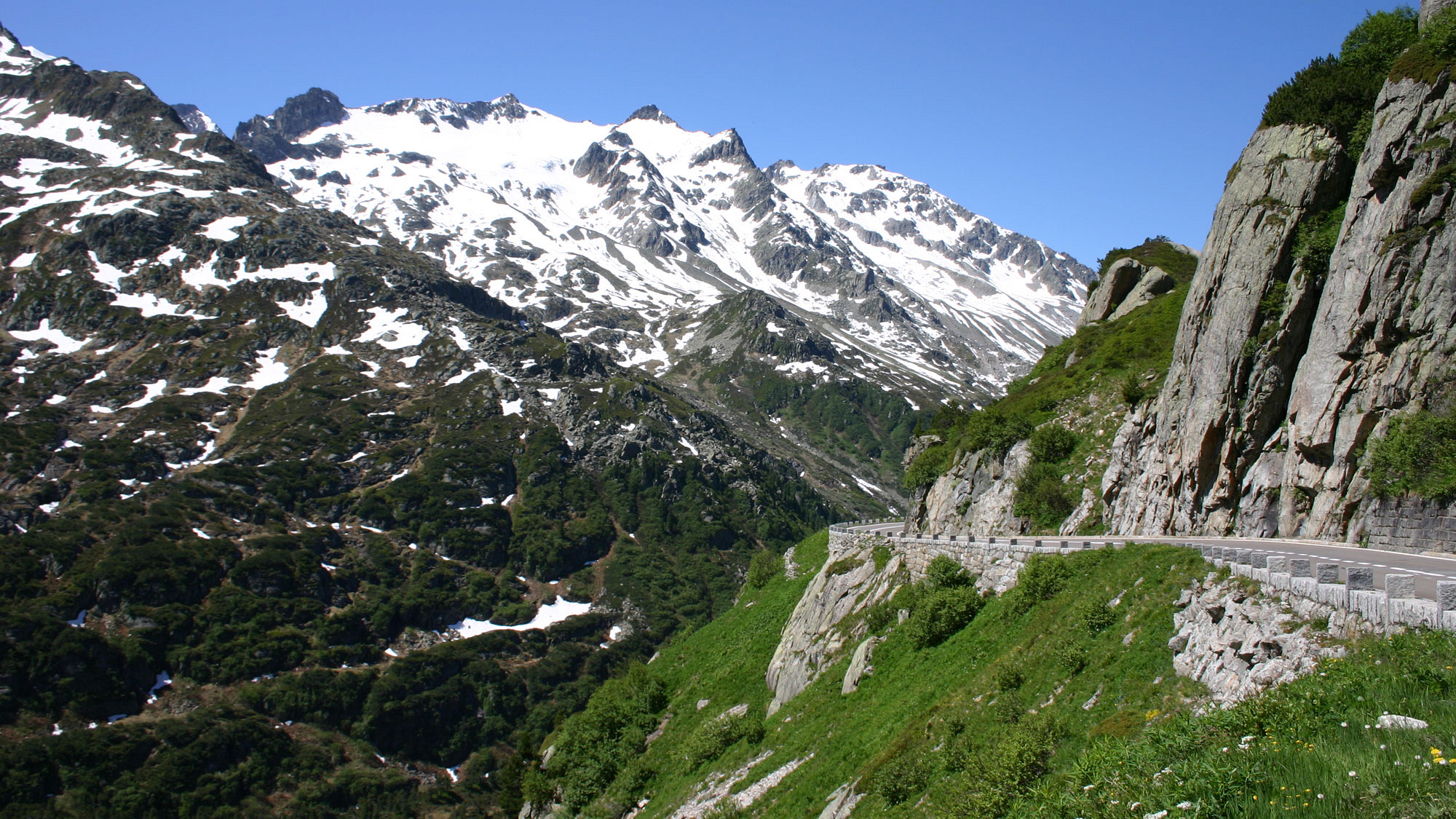 Das Radlefshorn und links davon der Giglistock. Sommer. Sonne. Einer der wenigen Momente an diesem Sonntag, an dem die Sustenstrasse frei von Autos und Moorrädern war.