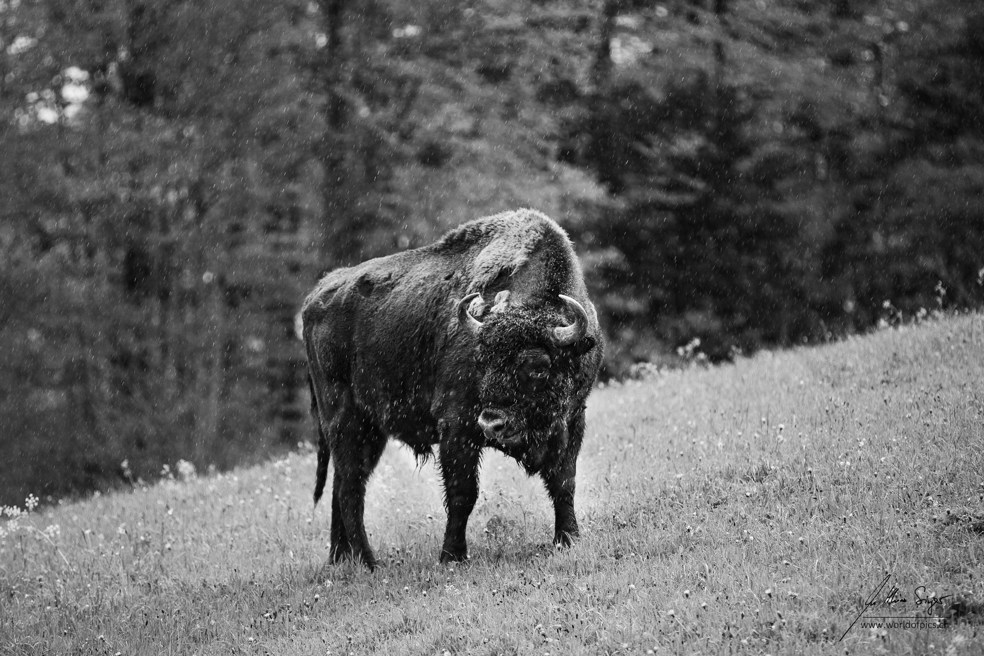 Das Wisent, auch Europäischer Bison genannt, ist das größte Landsäugetier Europas und ein Symbol für die Wildnis des Kontinents. Mit seiner imposanten Statur und einer charakteristischen dunklen Fellfarbe ist das Wisent ein faszinierendes Tier, das hauptsächlich in Wäldern und offenen Landschaften lebt. Das Wisent ist vom Charakter her friedlich und scheu. Wenn sein Verhalten respektiert wird, ist es für Menschen absolut ungefährlich. Früher weit verbreitet, wurde das Wisent durch die menschliche Jagd und die Zerstörung seiner Lebensräume in Europa komplett ausgerottet. Einzig 12 Tiere in Wildpärken überlebten. Aus diesen Tieren wurden in den letzten Jahrzehnten neue Herden gezüchtet und in diversen Wiederansiedelungsprojekten in die Natur entlassen. Wisente sind Pflanzenfresser und ernähren sich hauptsächlich von Gräsern, Kräutern, Baumrnde und Laub. Sie spielen eine wichtige Rolle im Ökosystem, indem sie durch ihr Weideverhalten die Vielfalt und Gesundheit der Landschaft fördern. Gleichzeitig ist dies aber auch einer der Hauptkritikpunkte an den Wiederansiedelungsprojekten: Die Tiere verursachen Schäden in Bäumen und landwirtschaftlichen Kulturen. Aus diesem Grund ist derzeit offen, ob und wie die Wisente auch in der Schweiz ausgewildert werden.