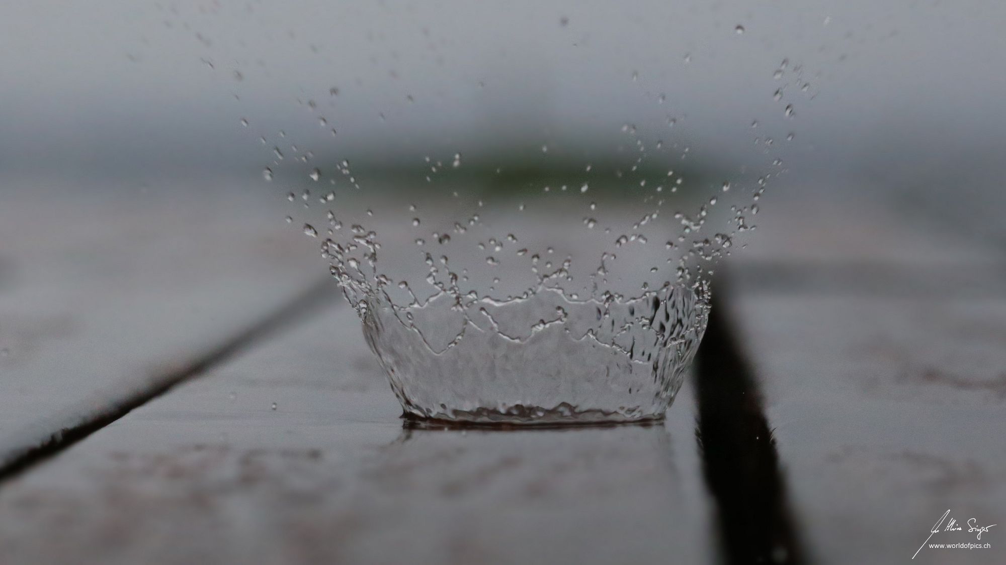 Bei einem heftigen Gewitter aufgenommen mit dem Makro-Objektiv. Leider etwas viel Rauschen, da es recht dunkel war, trotzdem eindrücklich, welche unglaublich schönen aber zugleich auch unglaublich vergänglichen Formen das Wasser schafft.