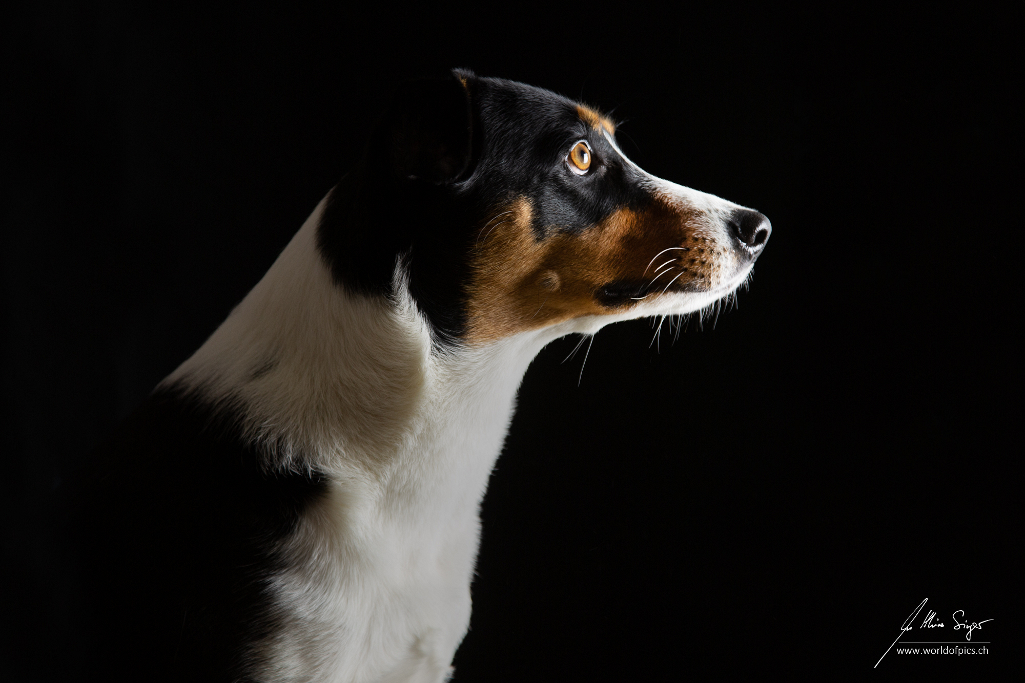 Der kleine Appenzeller Sennenhund. Mit vereinten Kräften in Szene gesetzt.