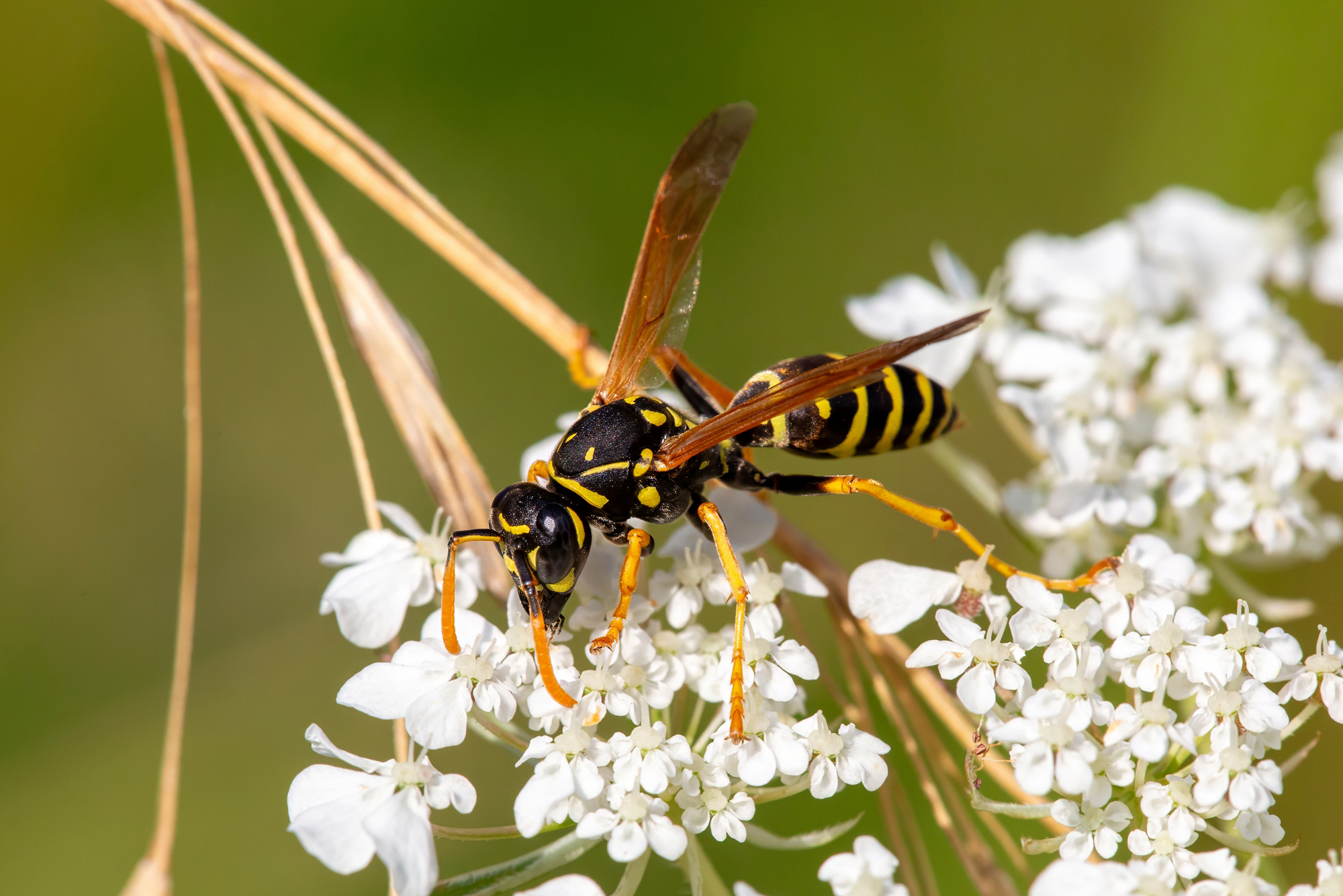 Feldwespen sind faszinierende Insekten. Sie sind nicht nur effektive Jäger, sondern spielen auch eine wichtige Rolle bei der Bestäubung. Die Feldwespe erkennt man gut an ihrem schlanken und eher schwarzen Körper. Dass sie auch "Papierwespe" heisst, hängt mit den überaus filigranen Nestern zusammen, die sie oft irgendwo in einem Strauch oder im Geäst eines Baume anlegt.