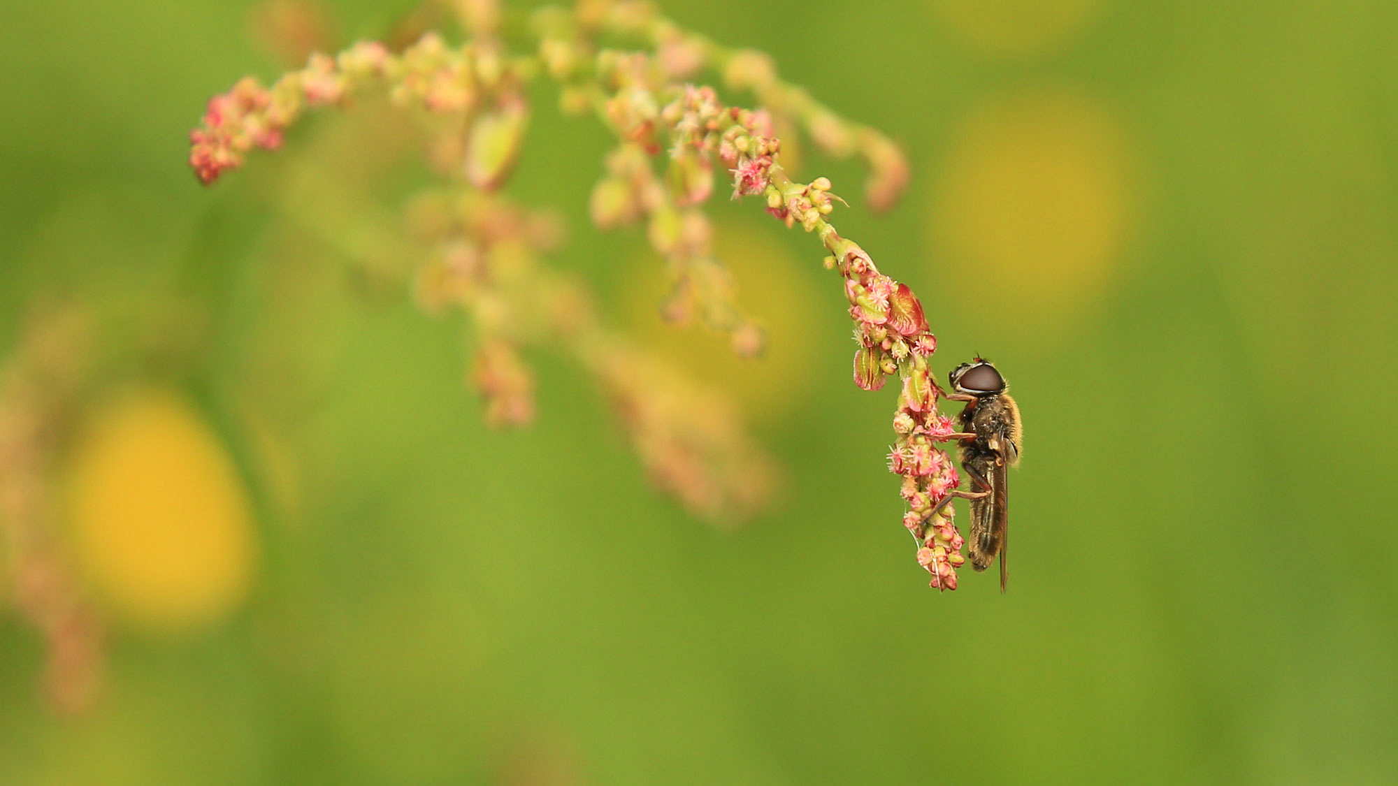 Auf der äussersten Spitze einer Sauerampfer legt diese Fliege eine kleine Pause ein.