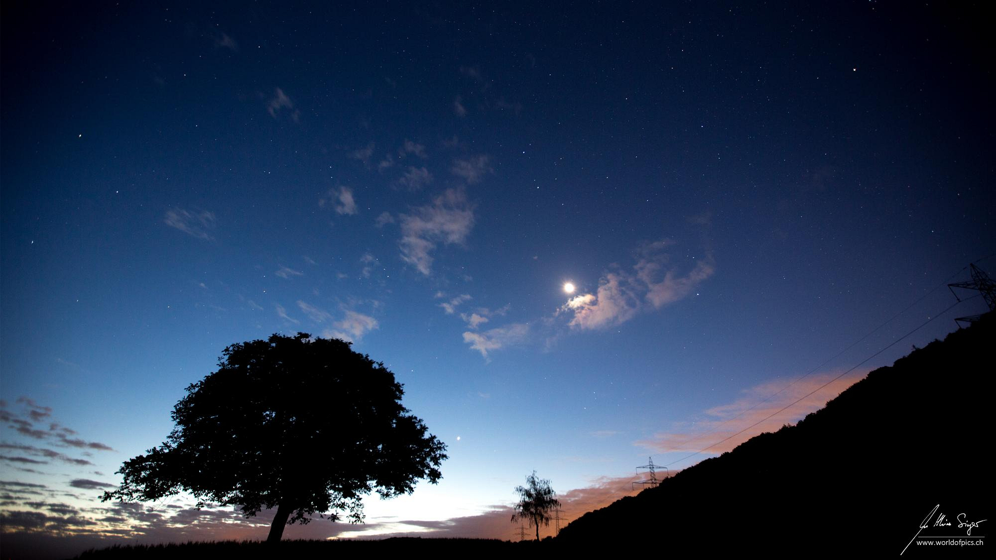 Mitte September um sechs Uhr in der Früh. Eigentlich ist es noch dunkel, das Auge merkt im Osten eine erste Rötung, doch die Langzeitbelichtung bringt es an den Tag: Da ist mehr Licht, als man sieht. Der kleine Lichstern rechts von der bildmitte ist übrigens der Mond.