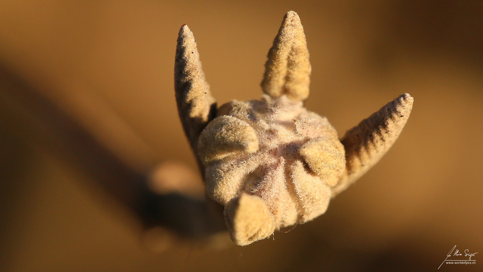 Eine Knospe des Wolligen Schneeballs in Nahaufnahme. Der Strauch ist eigentlich nicht wirklich wollig, sondern ganz einfach dicht behaart. Speziell ist, dass die Zweige des Wolligen Schneeballs für die Produktion von Pfeilen verwendet wurde und wird. Die Zweige sind sehr langfaserig und dadurch sehr elastisch und bruchfest.